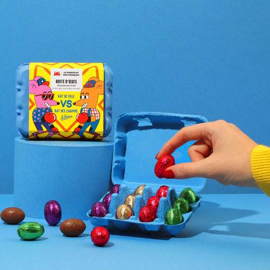 Chocolat des Francais Eierkarton "Die Stadtmaus und die Landmaus"