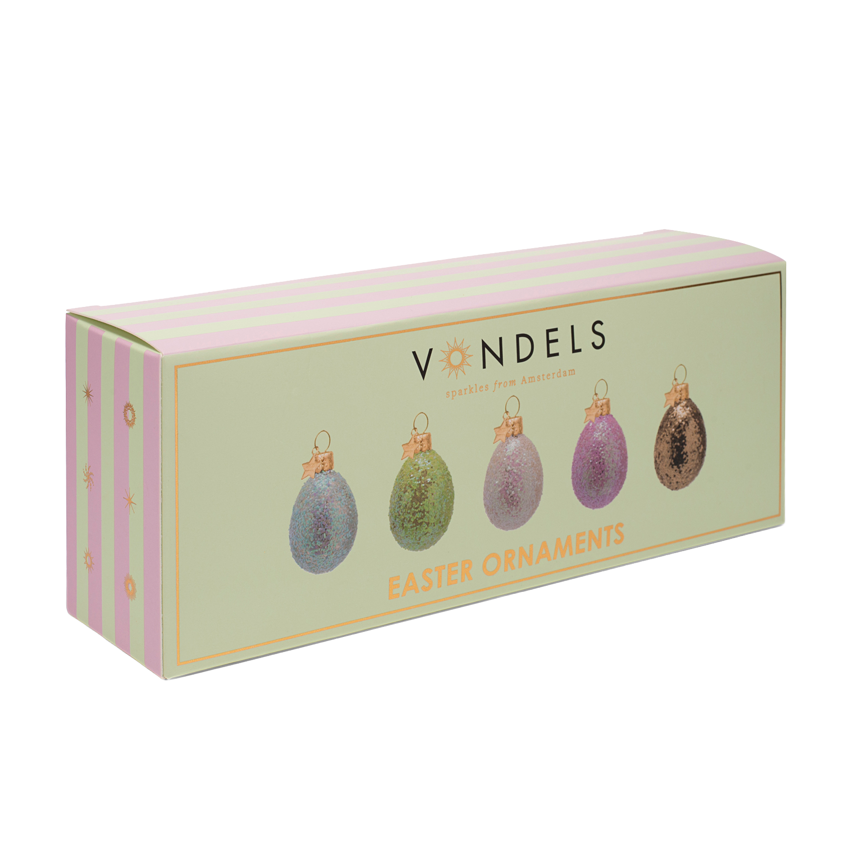 Die Osteranhänger von Vondels sind handgefertigte Glasornamente die Eleganz und Lebensfreude ausstrahlen. Mit diesen glitzernden Ostereiern könnt ihr eurer Osterdekoration einen stilvollen Touch verleihen.