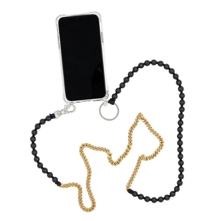 ina.seifart Handykette Perlenpanzer - schwarz-messing