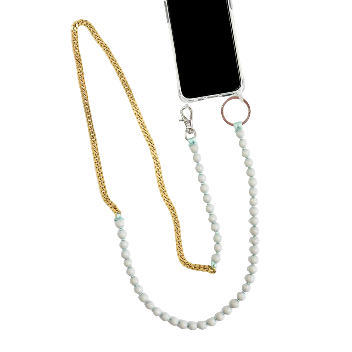 ina.seifart Handykette Perlenpanzer - hellgrau-messing
