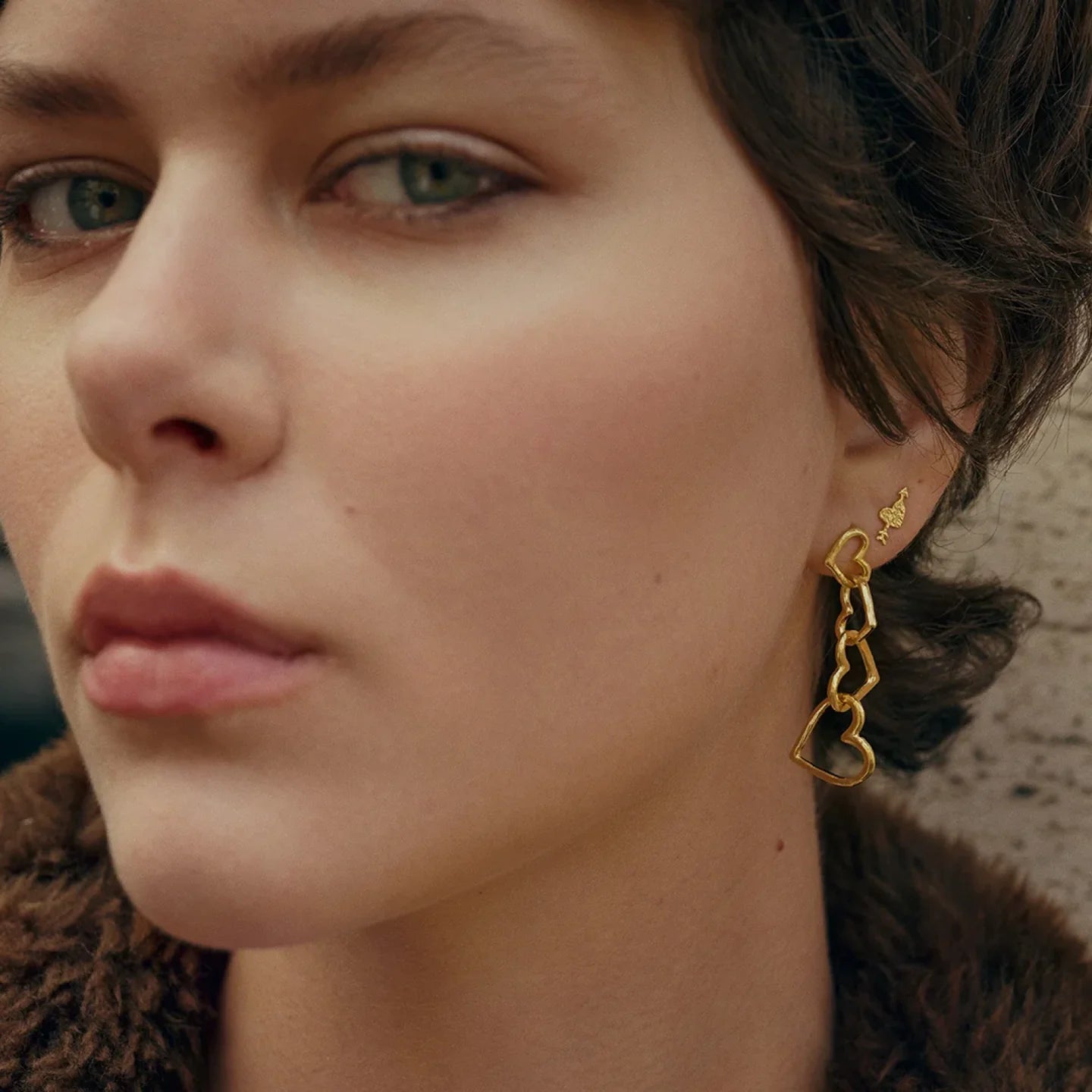 Die handgefertigten Details und starken Symbole machen den Schmuck von Maanesten aus Dänemark zu etwas ganz besonderem. Die Bonnie-Ohrringe sind so schön, wie sie klingen, mit vier miteinander verbundenen Herzen, die elegant unter das Ohr fallen.