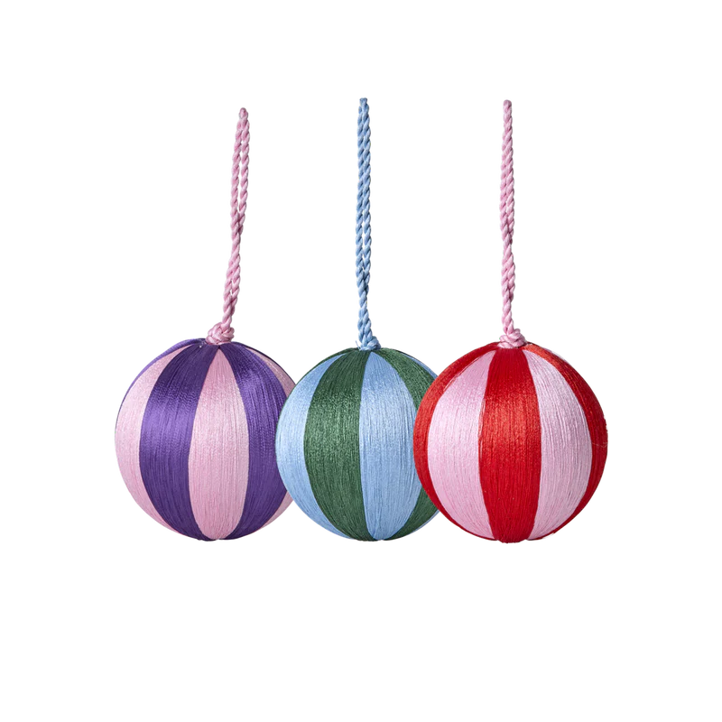 Mit diesem hübschen Set aus 3 kleinen Weihnachtskugeln bringst du Weihnachtszauber in dein Zuhause. Sie sind mit glänzenden Bonbonstreifen in wunderbaren Farbkombinationen verziert – perfekt für eine gemütliche Weihnachtsstimmung.