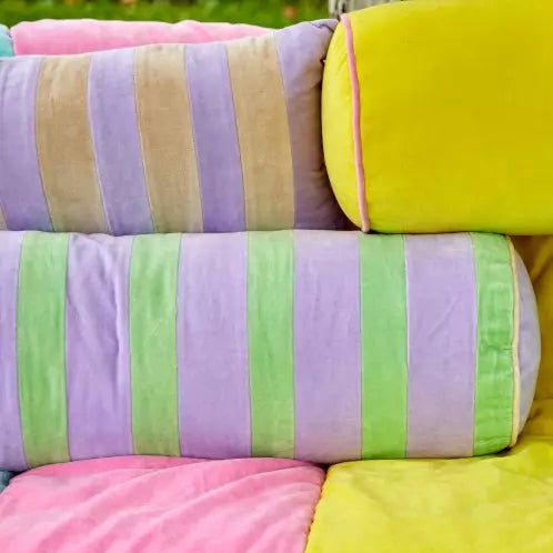 Die Rice Velvet Kissenrolle ist eine extra große Kissenrolle mit einem gestreiften Muster in zwei herrlichen Farben.